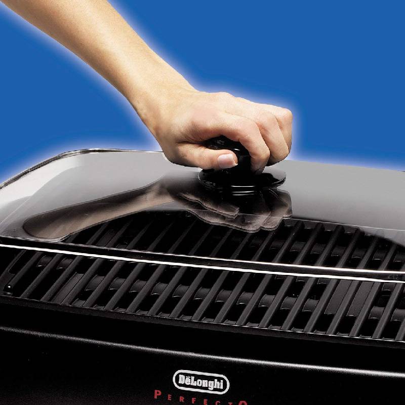 Grill indoors all year long with the Perfecto BG24 Indoor Grill by De'Longhi. Featuring an extra-large cooking surface, the grill cooks food consistently and thoroughly for delicious results. Grill to perfection with the aid of an adjustable thermostat and enjoy easy cleanup with a removable, nonstick drip tray. Including a tempered glass lid and safety features, this grill helps you prepare tasty meals for your entire family or party.